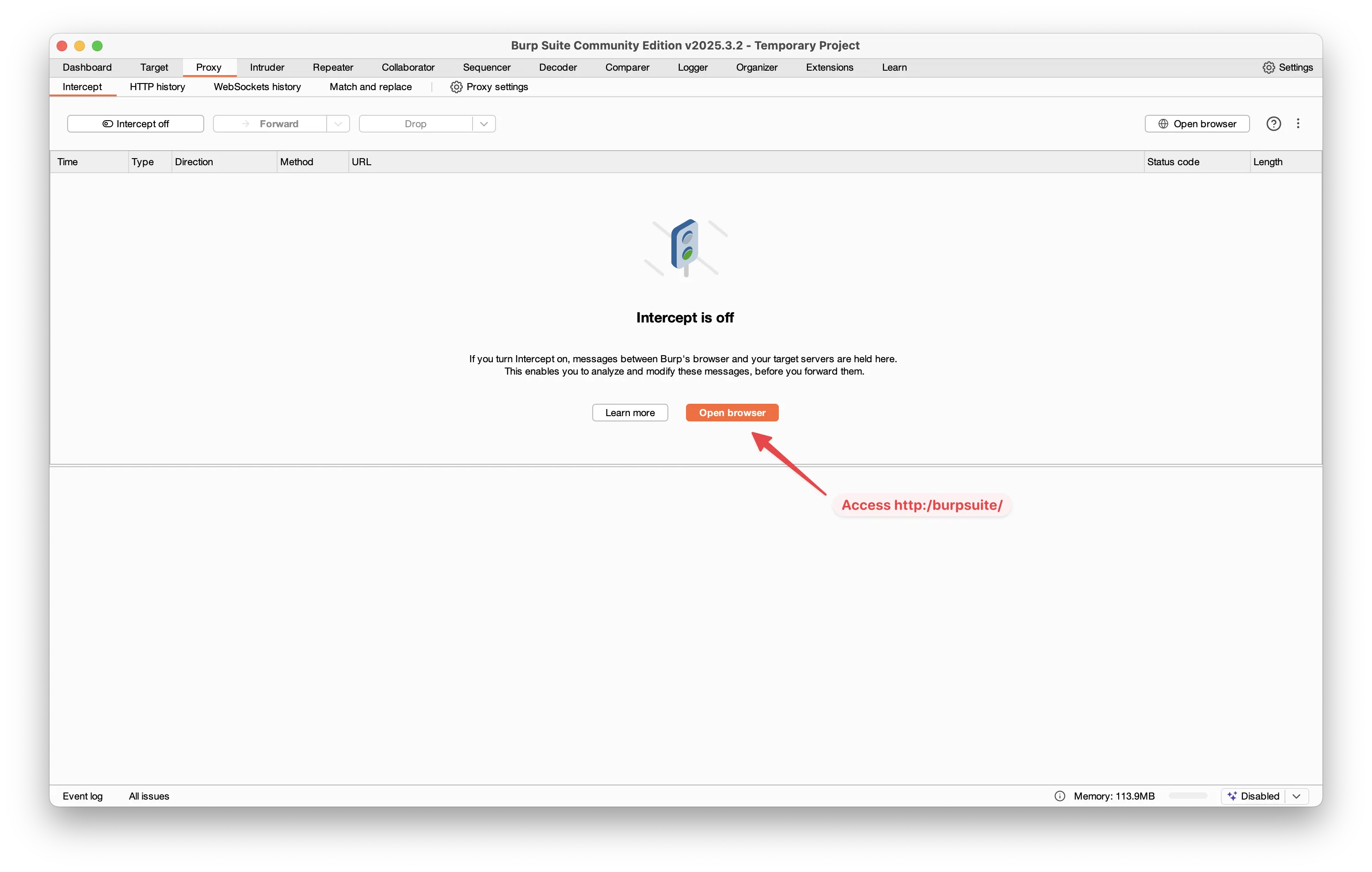 Open any website in your browser. If Burp Suite is set up correctly, you’ll start seeing HTTP requests appear in the Proxy → HTTP history tab.