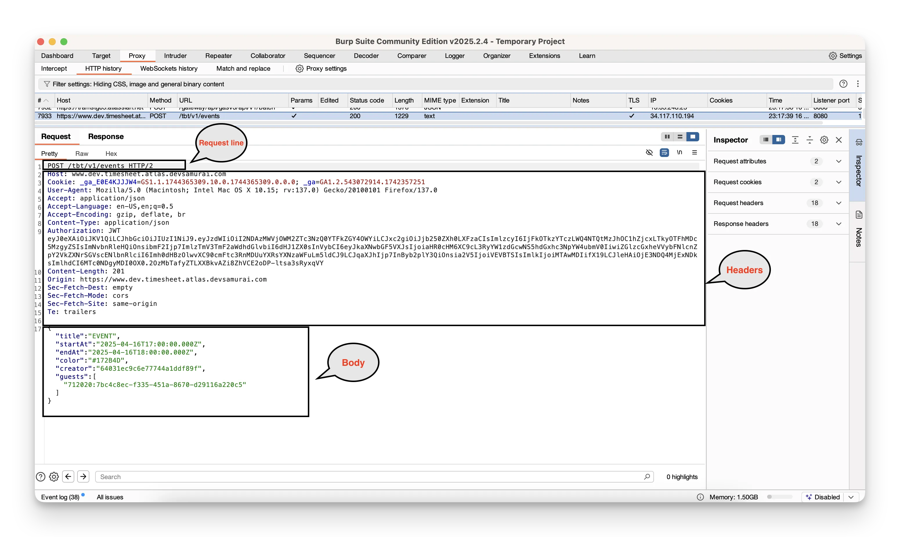 - You’ll see the raw HTTP request appear in the Request panel.