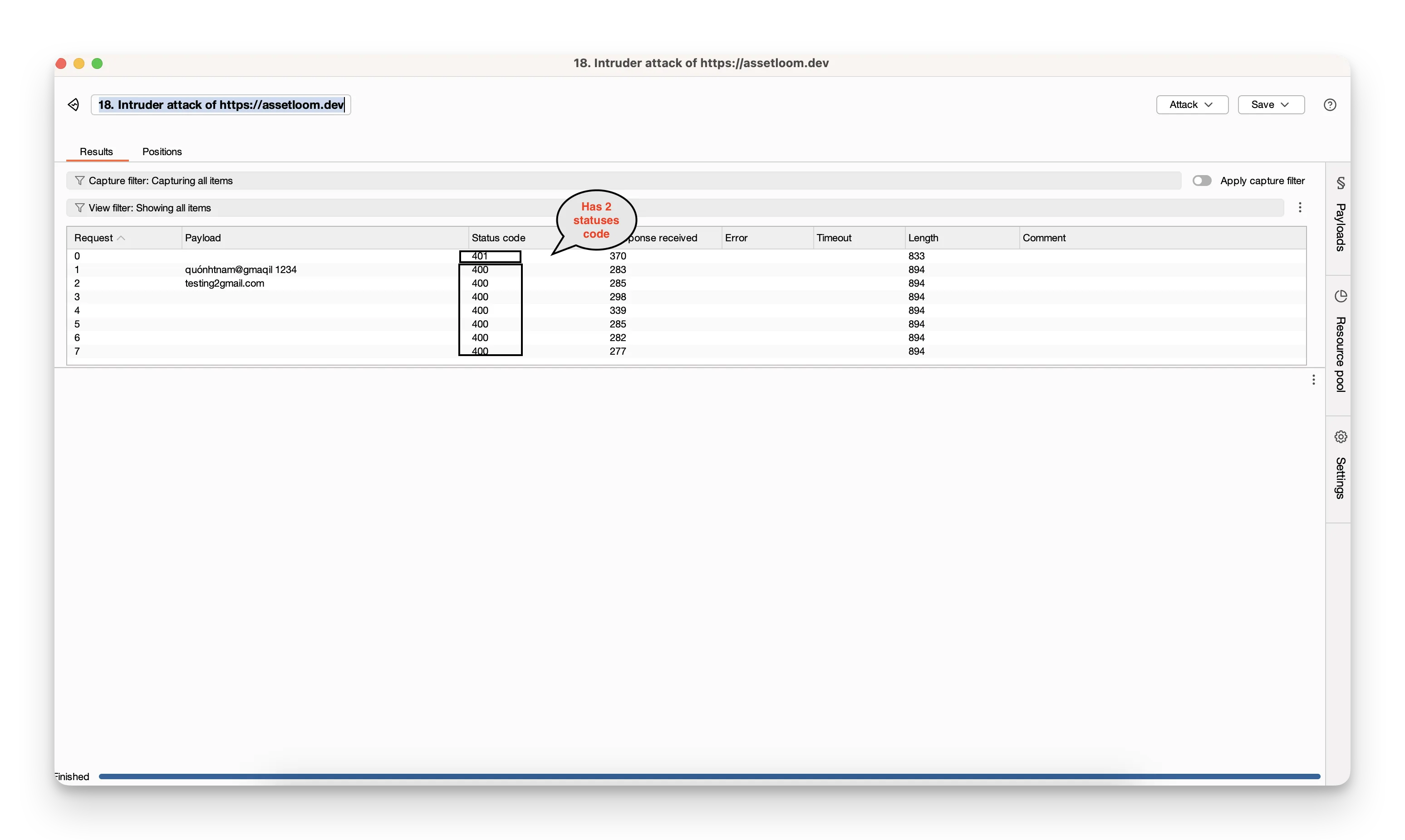 - Click Start attack. Burp will fire off all your combinations automatically.