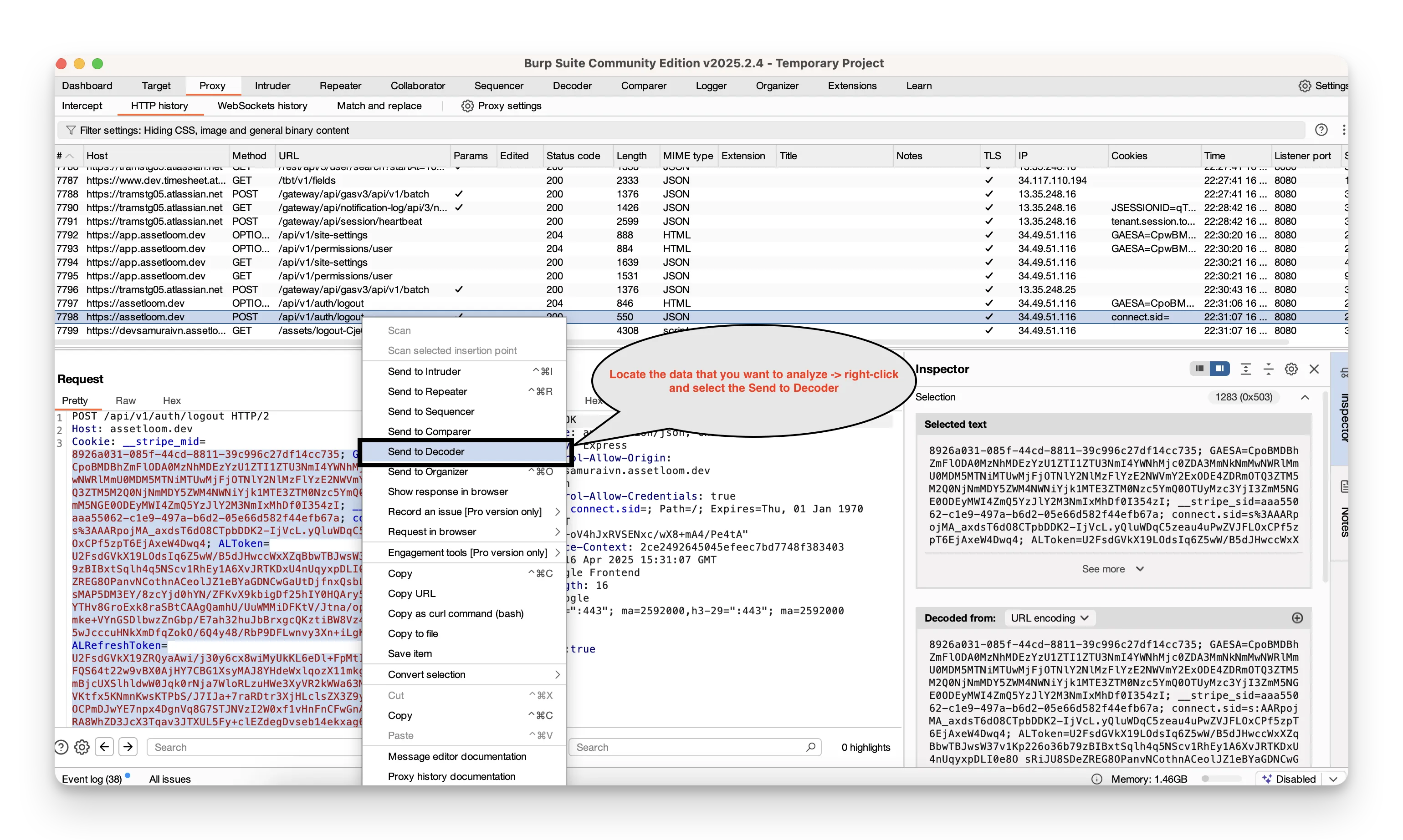 - Right‑click it in the message editor and select Send to Decoder.