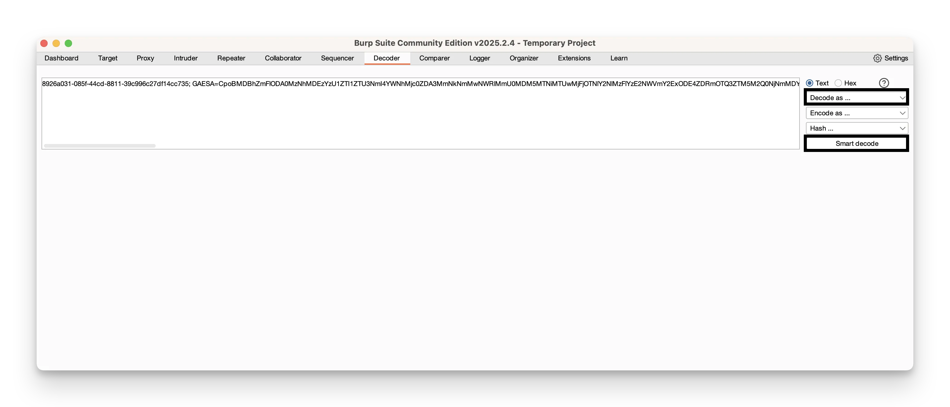 - Pick an operation (for example, Smart decode or Encode as) from the controls beside the panel.