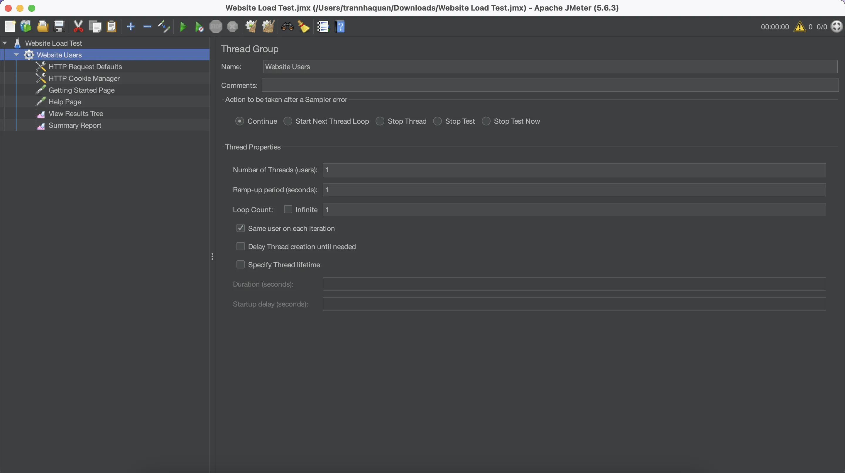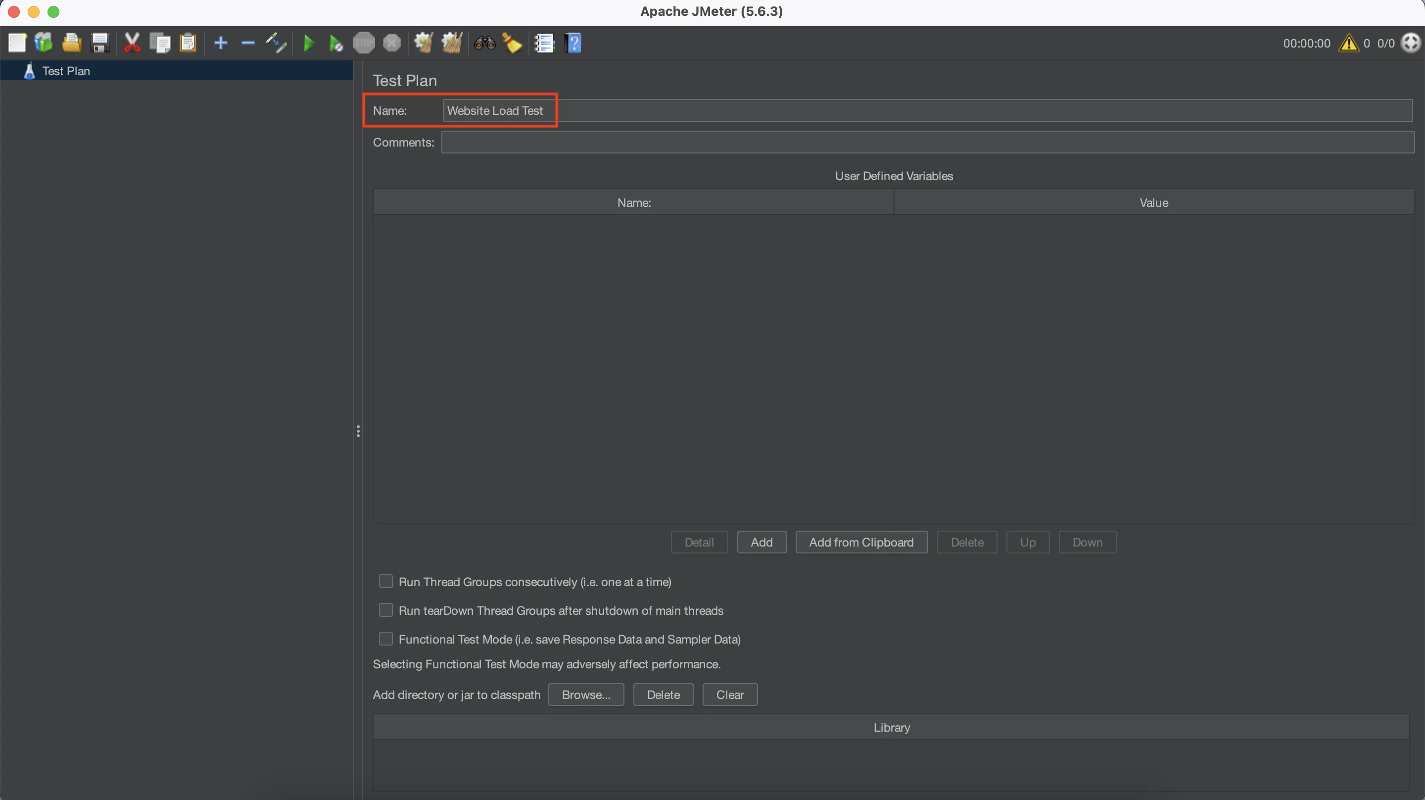 Rename the Test Plan: In the tree view on the left, select "Test Plan." In the right panel, change the "Name" to something like "Website Load Test".