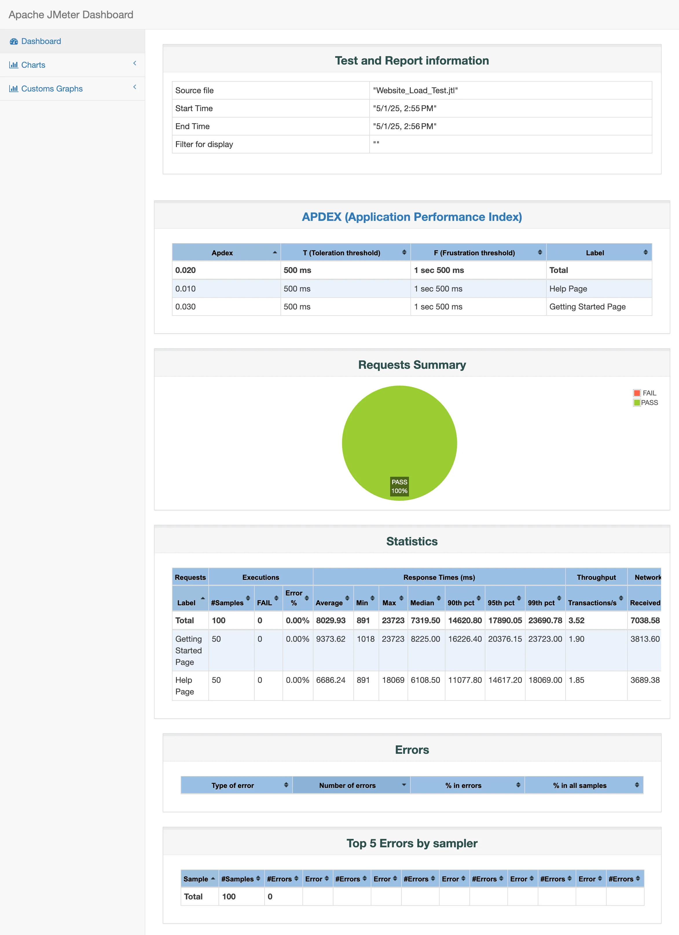 Tester's Insight: Don’t rely solely on the average! High percentile values (90%, 95%) and the error rate often reveal performance issues more clearly. A low average can be misleading - if 10% of your users are experiencing long delays, you’ve still got a problem.