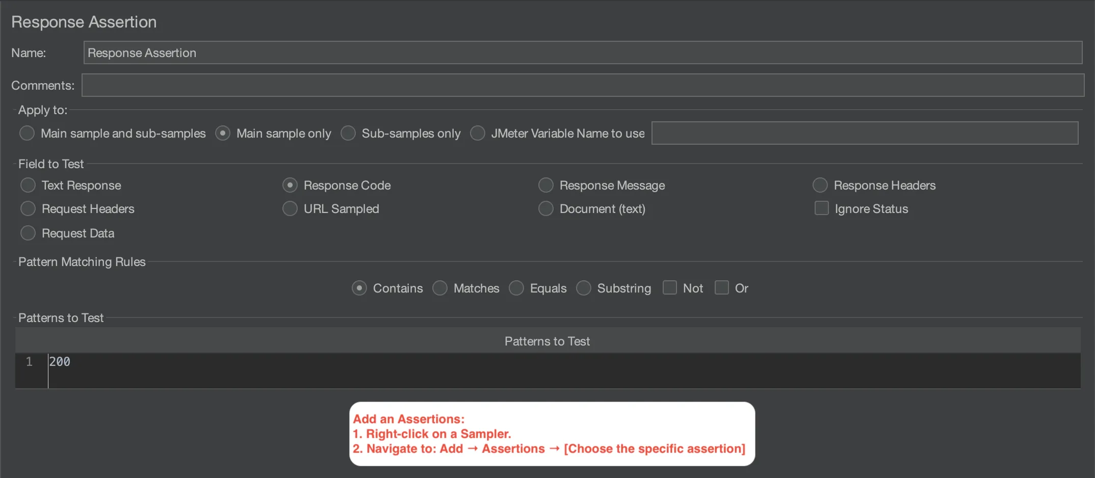 - Response Assertion: Verifies response body, headers, or status code. Critical for checking both speed and correctness.